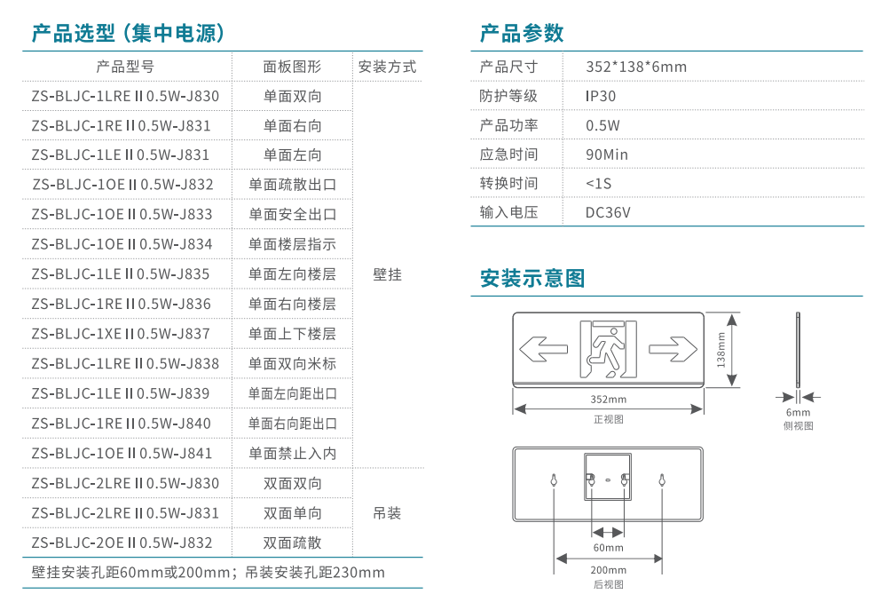 單面右向消防應急標志燈 | ZS-BLJC-1RE II 0.5W-J831 | 壁掛