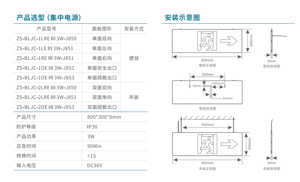 800大型款-雙面疏散出口消防應急標志燈 | ZS-BLJC-2OE Ⅲ 3W-J853 | 吊掛