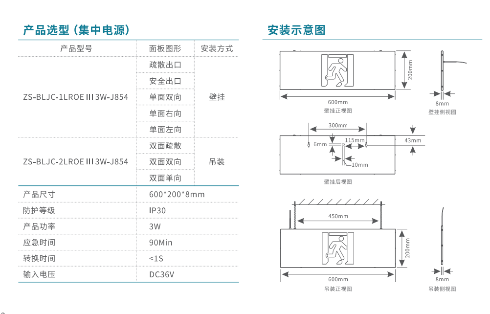 600大型款-單面疏散出口消防應急標志燈 | ZS-BLJC-1LR0E Ⅲ 3W-J854 | 壁掛