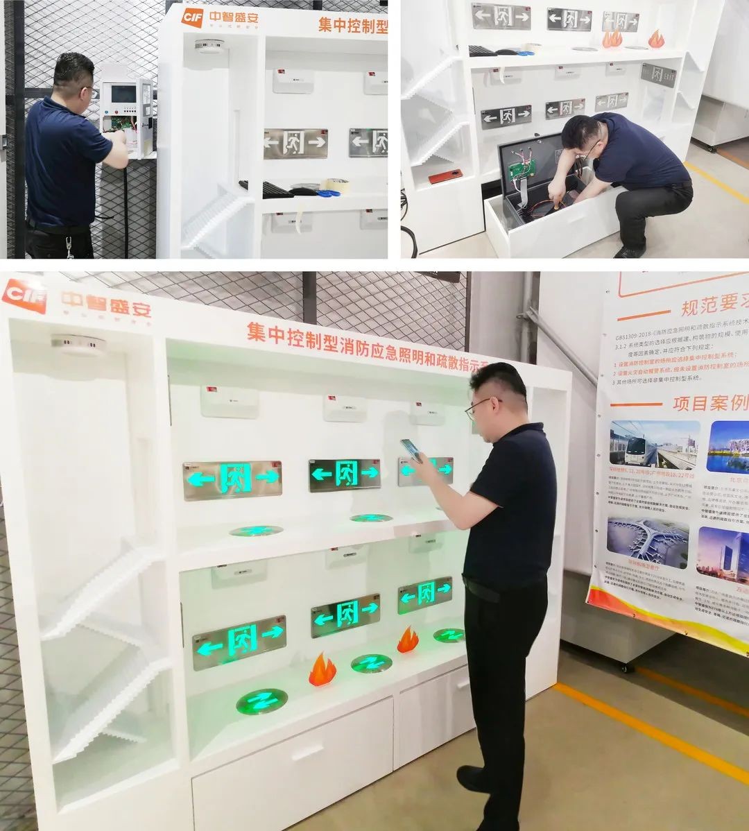 中智盛安廣受市場認可及用戶好評的CIF-SENSE100消防應(yīng)急照明和智能疏散指示系統(tǒng),也在展示體驗之列。他們將系統(tǒng)及配套產(chǎn)品的完整模型安置在體驗區(qū)供大眾了解參觀。