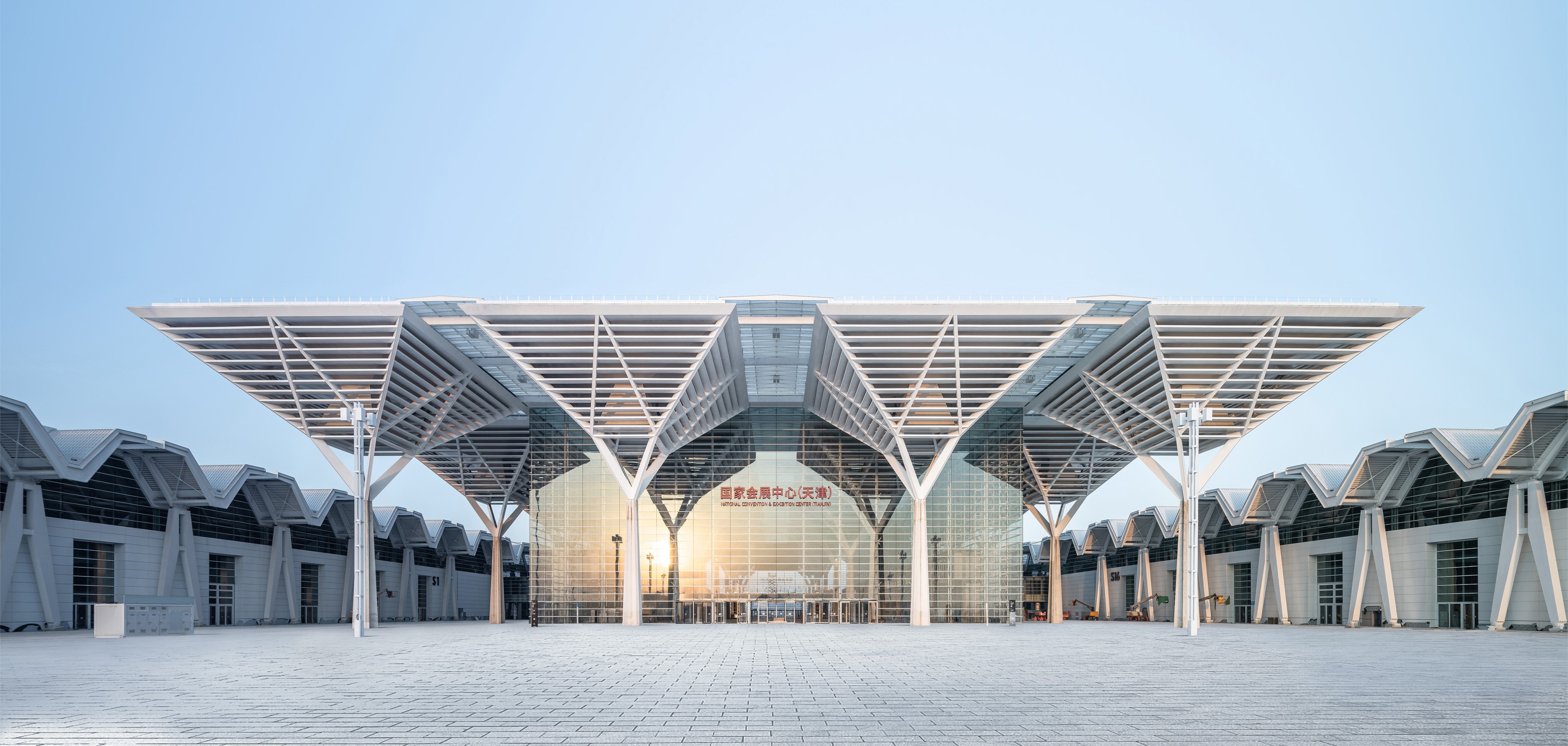 項目簡介:國家會展中心(天津)位于天津市津南區海河中游南岸,是商務部與天津市共建的國家級會展中心,天津會展中心是上海、廣州之外的第三大國際會展中心。主要包括大型展覽館、地下車庫和設備用房,項目總建筑面積134萬平方米,展館面積40萬平方米。綜合配套區包括酒店、商業、會議、辦公與餐飲,共約31.7萬平方米。