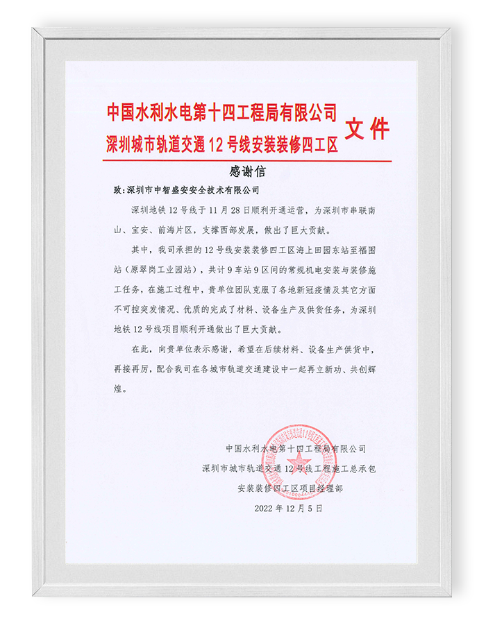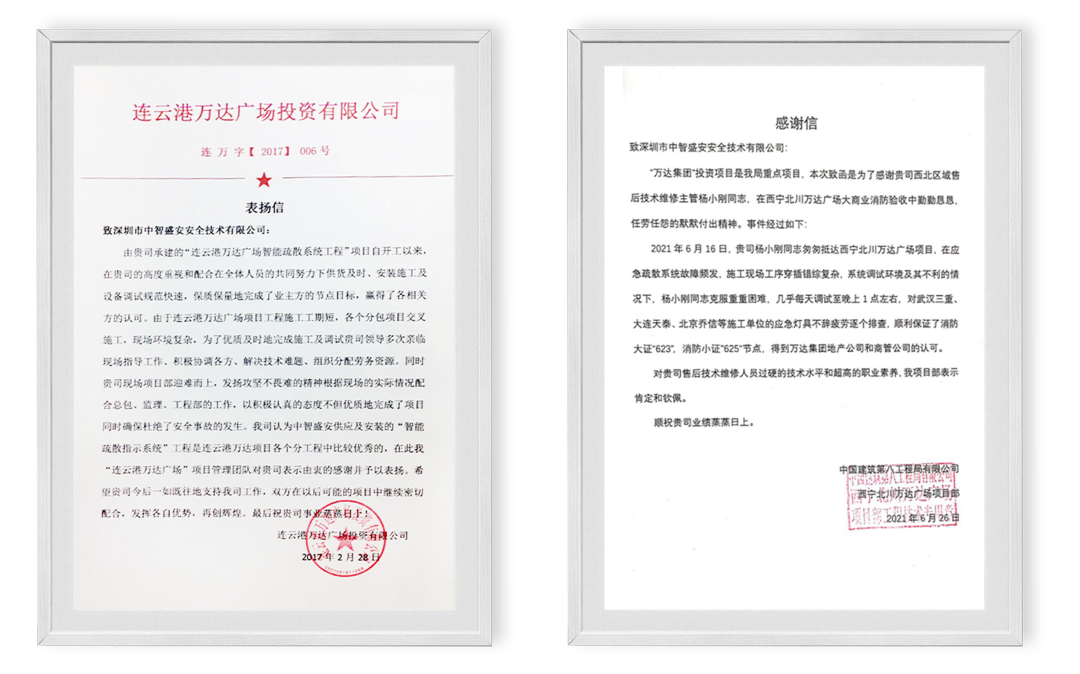 中智盛安獲“深圳地鐵、萬達(dá)廣場認(rèn)可并表揚(yáng)”